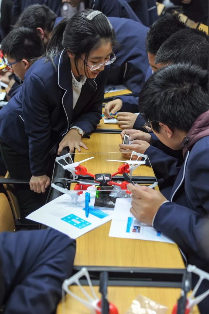 活动当天,宾主双方就“STEM课程—无人机”进行了充分交流,英方专家和我校STEM课程老师分别就“四旋翼飞行器的桨叶设计及四旋翼组装基础知识”“无人机的飞行运动姿态角,以及姿态角与四旋翼的飞行运动关系”“四旋翼与智能模块的编程”等知识面向创新班学生作了介绍。课程活动形式丰富,组装四旋翼飞行器和设计飞行程序等环节让学生高度参与,成功激发了大家兴趣,活动氛围热烈精彩纷呈。
