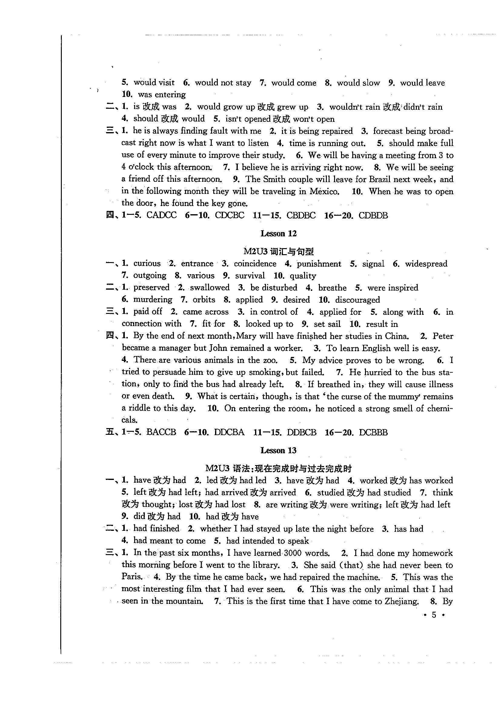 高一英语暑期作业参考答案